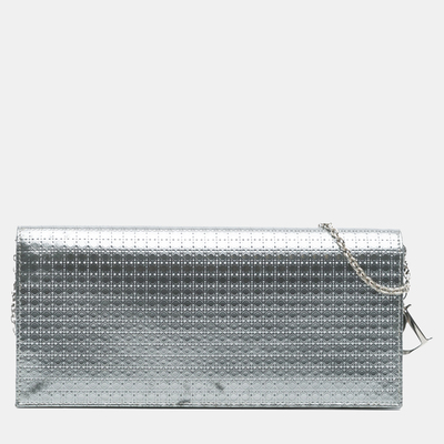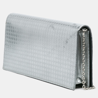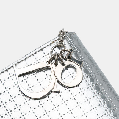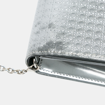 Dior Silver Metallic Patent Microcannage Lady Dior Croisiere Chain Clutch 1228121 (lpn31032467)