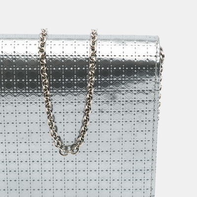 Dior Silver Metallic Patent Microcannage Lady Dior Croisiere Chain Clutch 1228121 - 1
