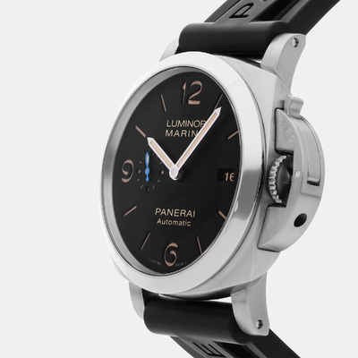 This authentic pre owned Panerai Luminor Marina PAM 1312 is a 44 mm automatic men’s watch that combines robust design with Swiss Italian craftsmanship. Featuring the iconic Luminor cushion shaped case and reliable automatic movement, it exemplifies Panerai’s dedication to precision and durability. A distinguished addition to any luxury watch collection, this timepiece reflects timeless style, sophistication, and enduring horological excellence.