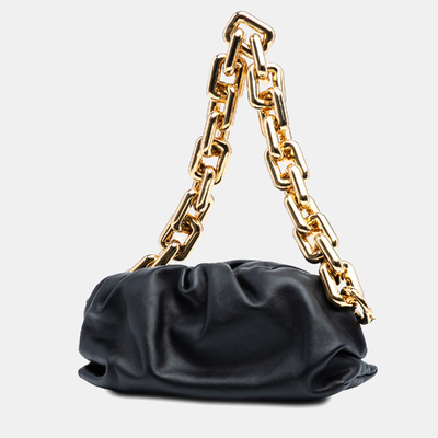 This authentic pre owned Bottega Veneta Small Chain Pouch in Black Lambskin is a sleek designer piece that blends modern minimalism with Italian craftsmanship. Crafted from supple lambskin, it features a compact silhouette with subtle chain detailing, ideal for carrying essentials in style. A pre loved luxury bag, this Bottega Veneta pouch embodies understated elegance, versatility, and enduring sophistication.