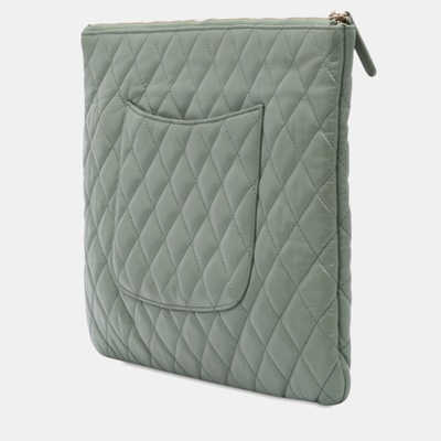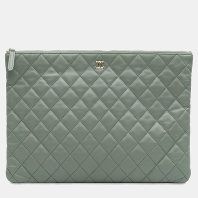 Chanel Green Large Quilted Lambskin O Case Clutch 1228080 - 1