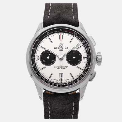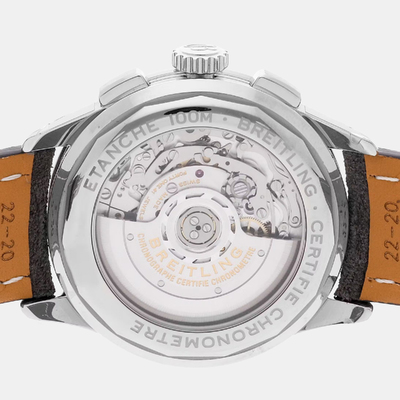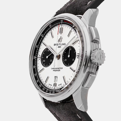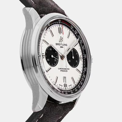 This authentic pre owned Breitling Premier B01 Chronograph AB0118221G1X1 is a 42 mm automatic men’s watch that perfectly balances sporty functionality with refined elegance. Powered by Breitling’s precision B01 movement, it features a chronograph complication and a sophisticated dial design. A distinguished addition to any watch collection, this timepiece exemplifies Swiss craftsmanship, reliability, and enduring luxury.