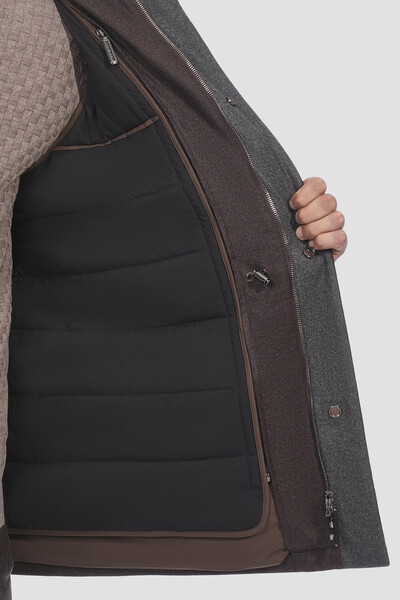 Демисезонная куртка Stefano Ricci на потайной молнии и клёпках с планкой. Для изготовления изделия с талией на скрытой кулиске выбран мягкий трикотаж на основе шерсти и кашемира шоколадного оттенка. Модель с высоким воротником-стойкой является идеальным сочетанием стиля и функциональности. Сдержанный дизайн характеризуется наличием серых вставок сзади на воротнике и на внутренней стороне планки застёжки. Боковые многофункциональные карманы с клапанами добавляют куртке практичности, предоставляя удобство для ежедневного ношения.