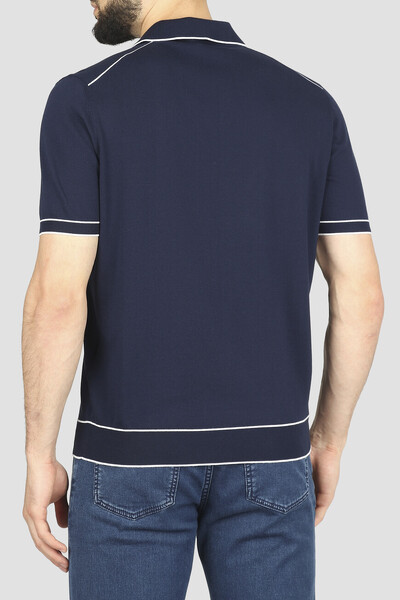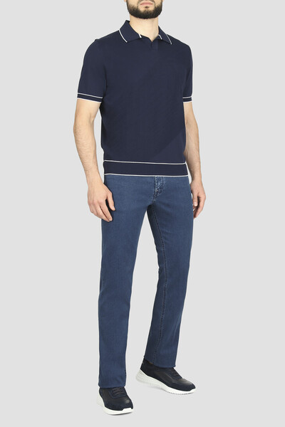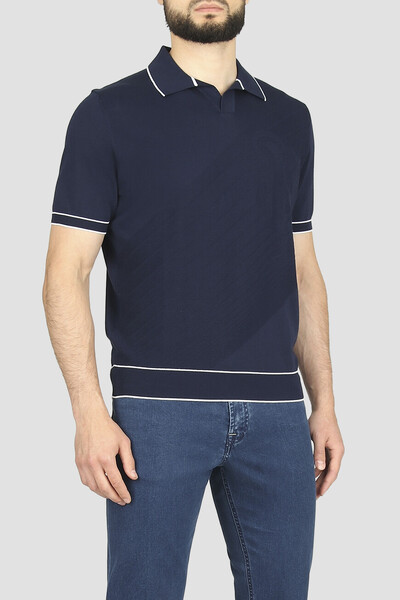 Поло Stefano Ricci сыграет роль основы для создания сезонных многослойных ансамблей. Для изготовления изделия цвета ночного неба выбран лёгкий хлопковый трикотаж с самыми тонкими и длинными волокнами. Поверхность передней стороны модели покрыта фактурным узором в виде диагональных полос, в котором угадывается крупная монограмма бренда. Края отложного воротника, манжет рукавов и эластичного пояса подчёркнуты узкой белой каймой.