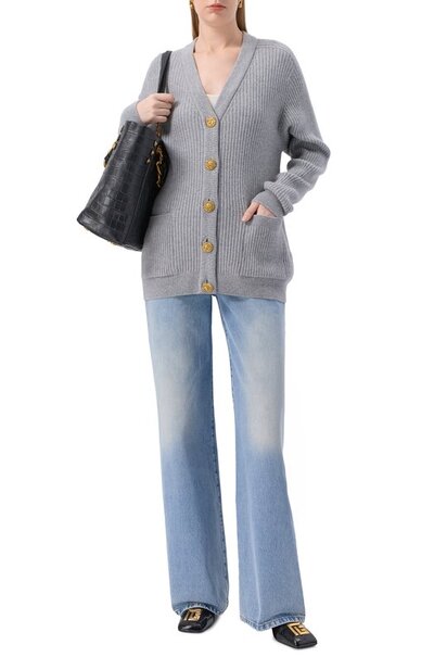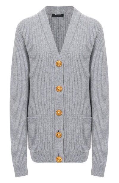 Кардиган из кашемира и шерсти Balmain ff0k0003/kj17 (серый, lpn31033821)