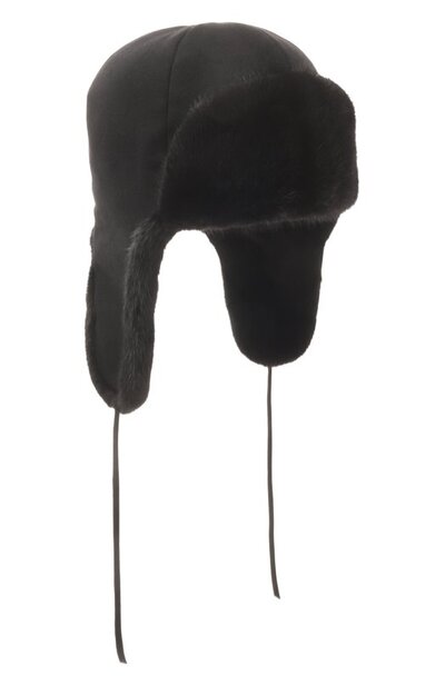 Шапку-ушанку «Бруклин» выполнили из меха черной норки и английского кашемира, обработанного для защиты от влаги и ветра. Модель с кожаными завязками и регулятором размера сзади дополнили фирменной гофрированной подкладкой, не сминающей прическу.