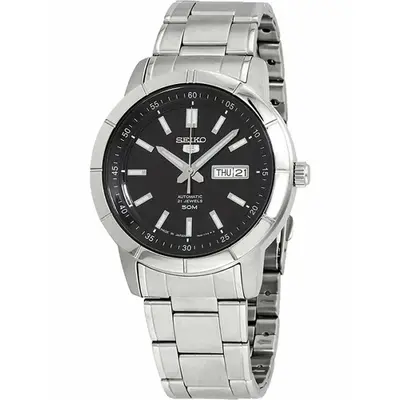 Мужские японские наручные часы Seiko SNKN55J1. Оригинальный дизайн классического стиля. Часы механические с автоподзаводом. В механизме камней — 21. Противоударное устройство оси баланса от небольших механических воздействий. Дисплей даты и дня недели. Стрелки и метки часов покрыты безопасным люминесцентным покрытием, которое светится в темноте. Прочное, устойчивое к царапинам, минеральное стекло обеспечит защиту часов от повреждений. Высокая водонепроницаемость 50WR (5 Бар). Не снимая часов, Вы можете принимать душ или мыться в ванне. Корпус и браслет часов сделан из прочной нержавеющей стали с высокими антикоррозийными свойствами. Мужские японские наручные часы Seiko – это мужской стиль, высокое качество и доступность.