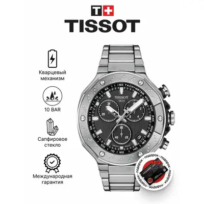 Швейцарские кварцевые наручные мужские часы Tissot T-Race Chronograph T141.417.11.051.01 - это воплощение динамики мотоспорта и швейцарского качества. Наручные часы станут отличным решением для любого случая: на работу, переговоры с деловыми партнёрами, прогулку с друзьями или праздничный вечер. Мужские часы водонепроницаемы до давления 10 бар, оснащены кварцевым механизмом хронографа и часовой и минутной стрелками с покрытием SuperlumiNova.Особенности часов:- Диаметр циферблата: 45 мм;- Толщина корпуса: 11,8 мм;- Вес: 199г;- Тип механизма: кварцевые;- Калибр: ETA G10.212;- Элемент питания: RENATA 394;- Стекло: сапфировое с многослойным антибликовым покрытием с обеих сторон;- Водонепроницаемость: 10 бар (100 м.);- Задняя крышка: с гравировкой бренда;- Международная гарантия от производителя дает вам уверенность в их качестве и надежности.Модель Tissot T-Race Chronograph T1414171105101 - отличается более элегантным циферблатом, что не отрицает его спортивных корней. Круглый корпус, хорошо читаемый циферблат и практичный браслет делают эти часы очень удобными. Их эргономичный дизайн, качественные материалы и фирменные элементы, вдохновленные мотоспортом, подчеркнут ваш активный образ жизни. Эти кварцевые наручные мужские часы не просто показывают время – они отражают вашу страсть к движению и адреналину.