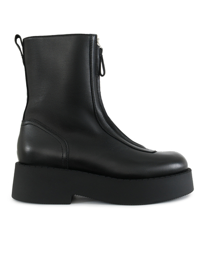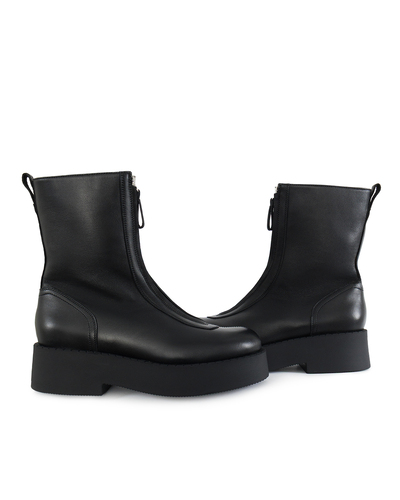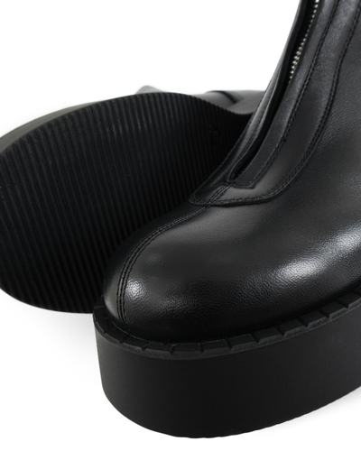 Эти ботинки — воплощение современного стиля и функциональности. Выполненные из высококачественной гладкой кожи, они излучают утончённый шик и долговечность. Высокий верх и монолитная платформа придают модели выразительность и уверенность, что делает их идеальными для любого трендового гардероба. Минималистичный дизайн с центральной молнией обеспечивает удобство и практичность, добавляя современный акцент в образ. Плотная и эргономичная подошва способствует комфортной носке и отлично амортизирует шаг, подчёркивая стремление к комфорту без ущерба для стиля. Элегантность и лаконичность линий позволяют этим ботинкам идеально сочетаться как с платьями средней длины, так и с узкими джинсами, создавая современные и модные образы, которые будут актуальны во всех сезонах.