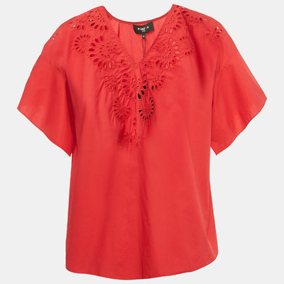 Paule Ka Red Embroidered Cotton Blouse L 1222020 (красный, lpn31045120)