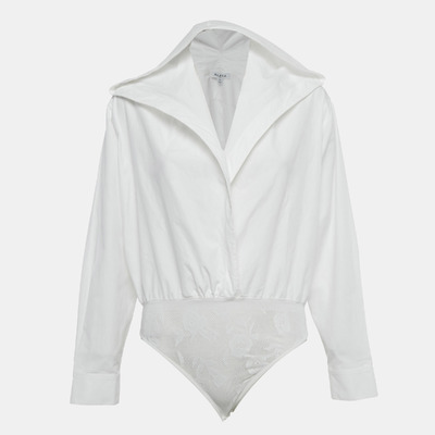 Alaia White Cotton Hooded Wrap Bodysuit Top S 1221693 (белый, lpn31045126)