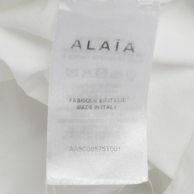 This Alaia bodysuit combines sporty comfort with contemporary elegance. The white cotton fabric, wrap design, and hooded detail offer a sleek silhouette. Ideal for layering or pairing with tailored bottoms.