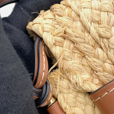 Loewe Gate Shoulder Bag Tan/Natural Raffia Leather Size Small 1228515 (lpn31045129)