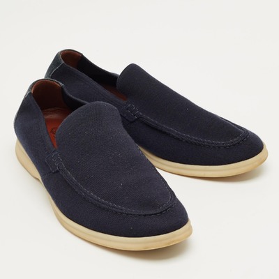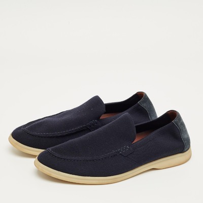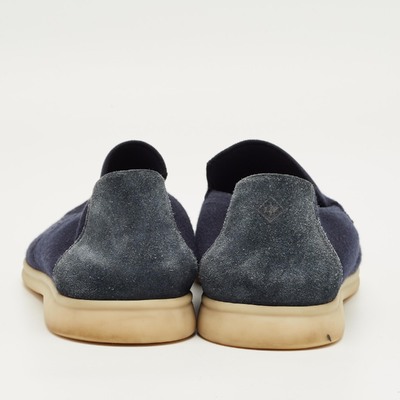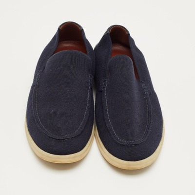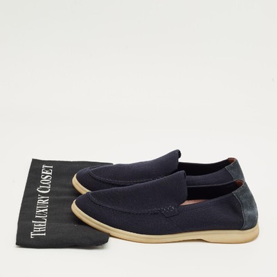 Loro Piana Navy Blue Knit Fabric and Suede Summer Walk Slip On Loafers Size 42 1228223 (lpn31045139)