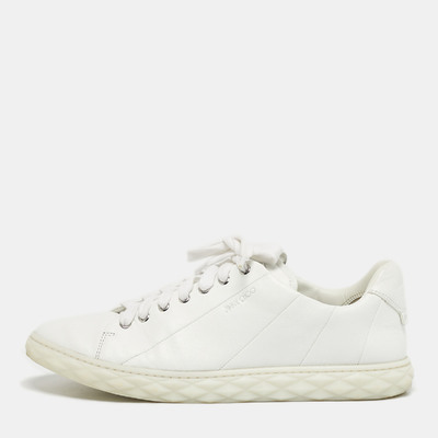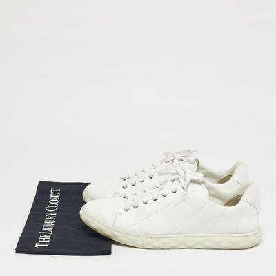 Jimmy Choo White Leather Diamond Low Top Sneakers Size 44 1228130 (белый, lpn31045145)