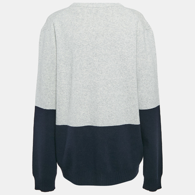 Zadig & Voltaire Grey/Navy Blue Wool Round Neck Rod Jumper L 1228033 (lpn31045146)