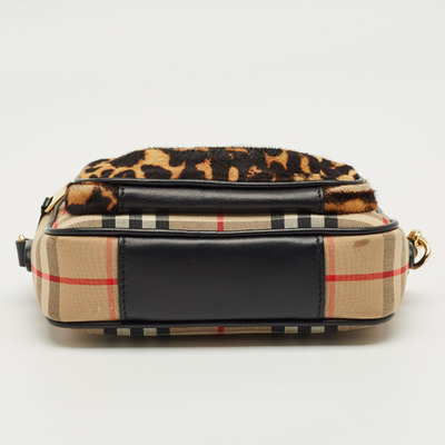 Burberry Brown/Black Leopard Print Calfhair and House Check Fabric TB Camera Bag 1228030 - 1