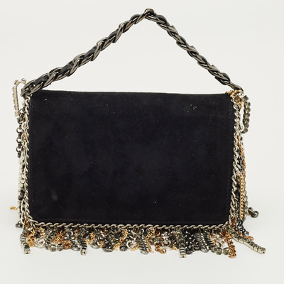 This Jimmy Choo shoulder bag is crafted from plush black suede and detailed with striking chain embellishment fringe detailing for a luxe appeal. The chic silhouette offers a perfect blend of edge and elegance. Ideal for both day and evening occasions, it adds instant glamour to any look.