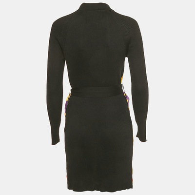 Versace Black/Yellow Barocco Print Silk and Rib Knit Cardigan XS 1226410 - 1