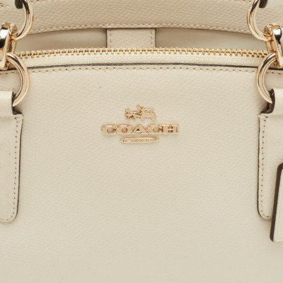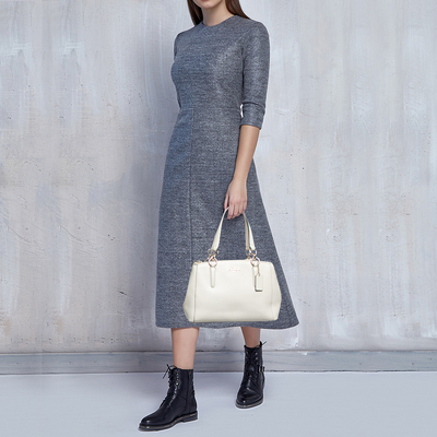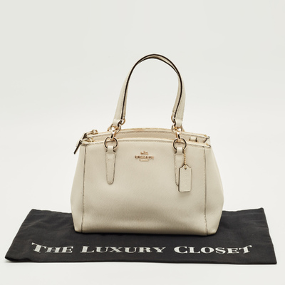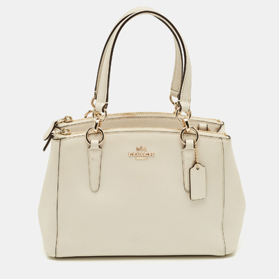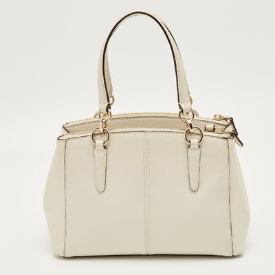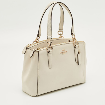 The Christie satchel embodies Coach’s approach to everyday luxury—stylish, spacious, and durable. In off white leather, it balances softness with strength, while gold tone accents trace its lines. It moves seamlessly from weekday mornings to weekend shopping.