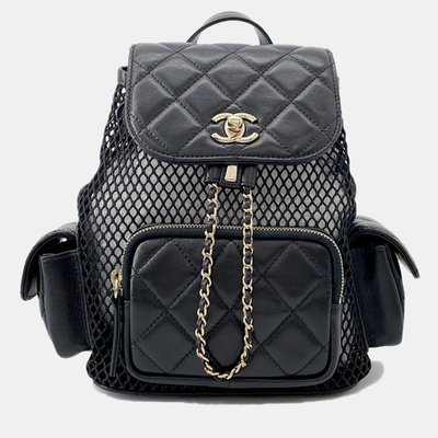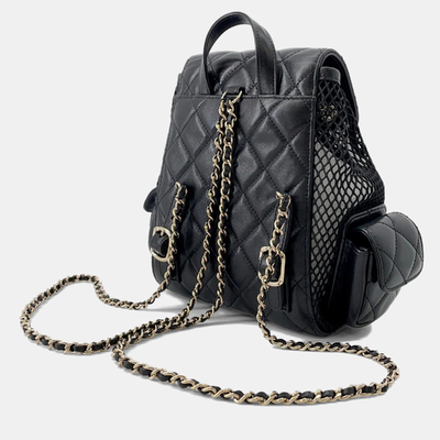 Chanel Backpack Black Mesh Shiny Lambskin 1228487 - 1