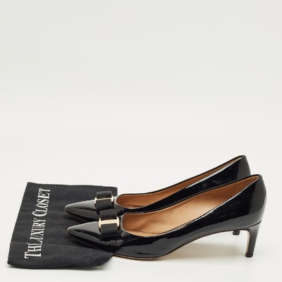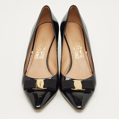 Salvatore Ferragamo Black Patent Leather Vara Bow Pumps Size 40 1228190 (чёрный, lpn31045199)