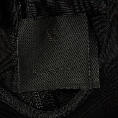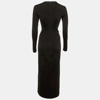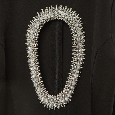 Givenchy sculpts black jersey into a body skimming gown punctuated with an artful front cut out and delicate embellishments. The design balances construction with high allure, letting the fabric move with ease while adornments catch the light just enough.