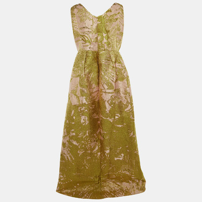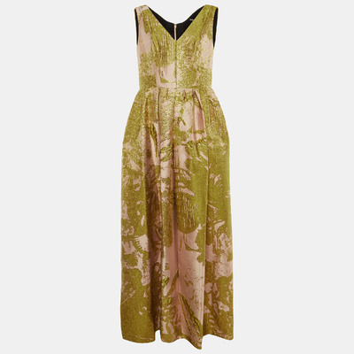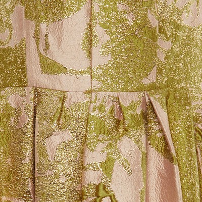 Crafted from a luxurious brocade blend, this sleeveless gown by Paule Ka captures elegance and modern femininity. Its vibrant pink hue radiates sophistication, accented by delicate hints of yellow for a touch of playful glamour. The smooth zip closure ensures a flawless fit, accentuating the body with grace.