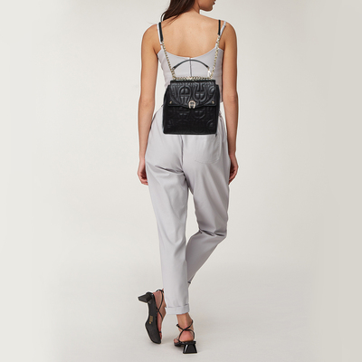 A canvas of understated craftsmanship, the Diadora backpack transforms functional form into a statement of heritage. Deep black leather embroidered with the Aigner logo creates a tactile rhythm, while structured compartments carry essentials with ease. Perfect for the city wanderer, it balances practicality and presence in a way that feels effortlessly intentional.