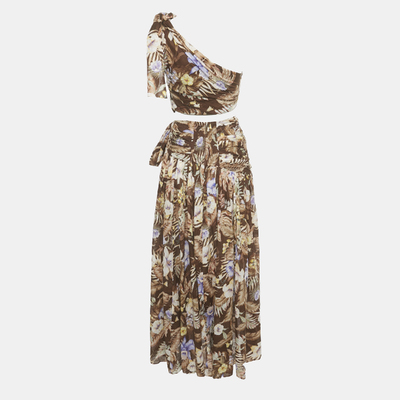 Zimmermann’s signature romanticism is on full display in this cotton crop top and skirt set, adorned with earthy florals. The Coco Bow detail adds a whimsical finish, while the airy fabric ensures easy elegance. Ideal for sun drenched afternoons or elevated vacation dressing, the set embodies the Australian house’s refined approach to effortless femininity.