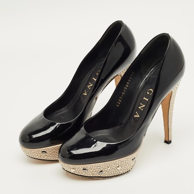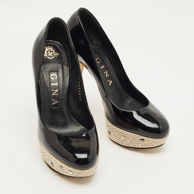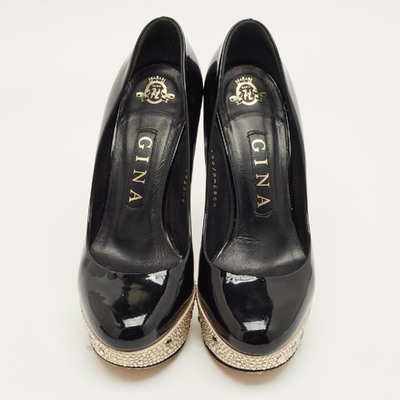 Gina Black Patent Leather Crystal Embellished Platform Pumps Size 37 1227715 (чёрный, lpn31045325)
