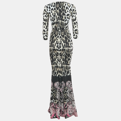 Cavalli pairs bold black and white animal print with delicate lace panels in this maxi dress. Stretchy jersey follows the body’s lines, while a lace insert at the front adds unexpected contrast.