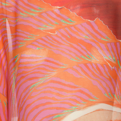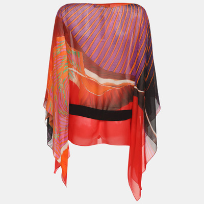 Ethereal and eye catching, this Roberto Cavalli kaftan top is crafted from sheer silk chiffon with a vivid multicolor print. The waist tie adds definition to its flowing silhouette. Ideal for resort styling or glamorous layering.