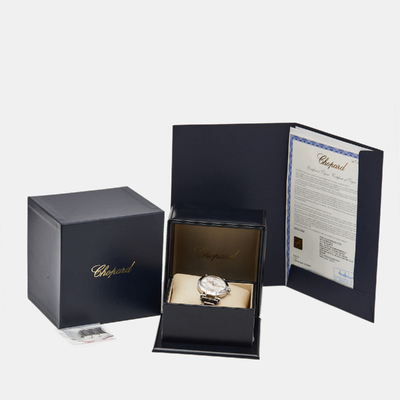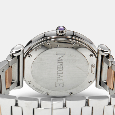 Where elegance meets architecture, the Chopard Imperiale womens wristwatch blends gleaming rose gold with the soft shimmer of mother of pearl. Its silver dial reflects light like morning dew, framed by a stainless steel case and held by a two tone bracelet. Every glance at the time feels ceremonial, as if worn for moments when distinction is not optional but expected.