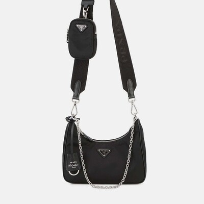 Crafted from sustainable Re Nylon, the PRADA Re Edition 2005 shoulder bag blends practical design with modern utility. Lightweight, durable, and water resistant, it includes a removable pouch and adjustable strap for easy, hands free wear.