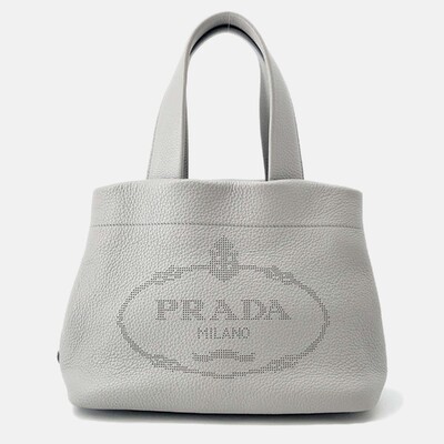 Prada Punching Logo Tote Bag Gray Leather Size Small 1228547 (lpn31045381)
