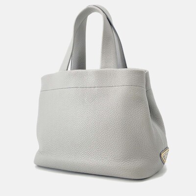 Prada Punching Logo Tote Bag Gray Leather Size Small 1228547 - 1