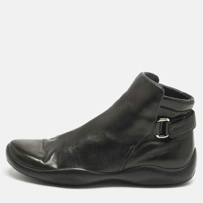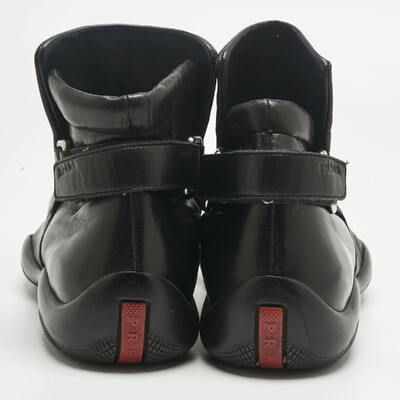 Prada Sport Black Leather High Top Sneakers Size 37 1228315 (чёрный, lpn31045396)