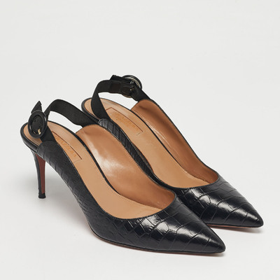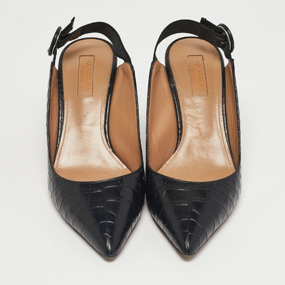 Aquazzura Black Croc Embossed Leather Yale Slingback Pumps Size 36 1228215 (чёрный, lpn31045401)