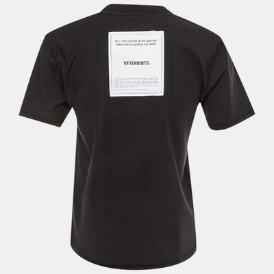 Vetements Black Cotton Inside Out Crew Neck T-Shirt S 1227866 (чёрный, lpn31045415)