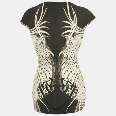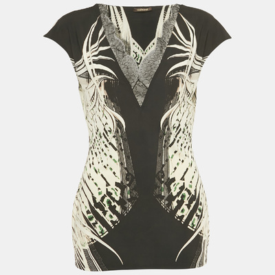 Roberto Cavalli Black /White Printed Lace Detail Jersey Top L 1227575 - 1