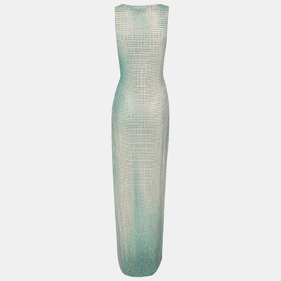 Self-Portrait Green Crystal Embellished Gradient Mesh Maxi Dress M 1225888 (зелёный, lpn31045432)