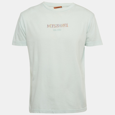 Missoni Blue Logo Embroidered Jersey T-Shirt M 1228196 (голубой, lpn31045475)