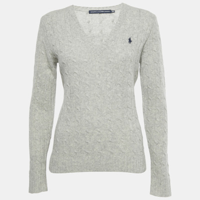 Ralph Lauren Grey Cable Knit V-Neck Sweater M 1226181 (lpn31045497)