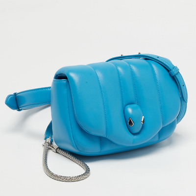 This Bvlgari x Ambush bag reinterprets the Serpenti in soft light blue leather. The flap is crowned with a sculpted serpent head in matching tones, while a convertible design lets it be worn around the waist or as a crossbody. Sleek, compact, and unmistakably bold, it blends signature style with modern versatility.