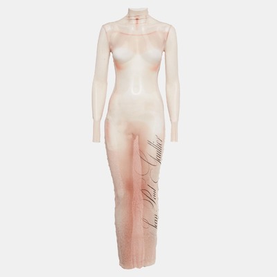 Jean Paul Gaultier Beige Printed Mesh Le Classique Long Dress XXS 1222364 (бежевый, lpn31045529)