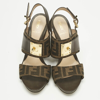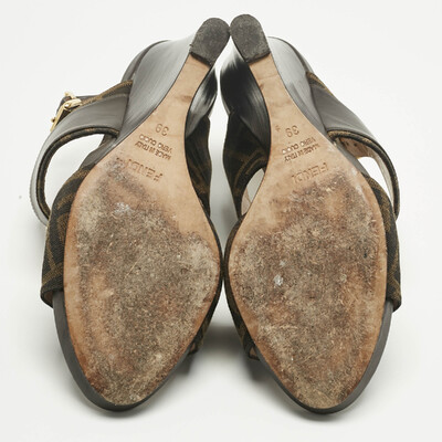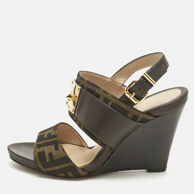 Fendi Brown Zucca Canvas and Leather Slingback Wedge Sandals Size 39 1228311 - 1