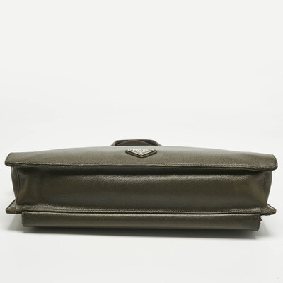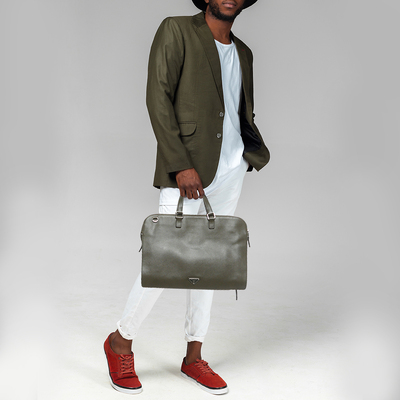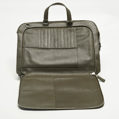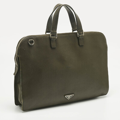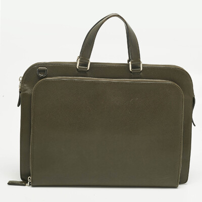 Prada’s briefcase in olive green Saffiano leather feels like a soft pause in the city rush. Crisp edges and subtle texture catch light at every angle, while spacious compartments hide essentials like whispered secrets. It’s an investment for those looking to buy a work bag.