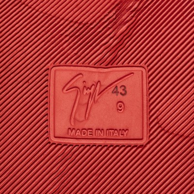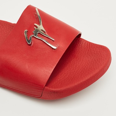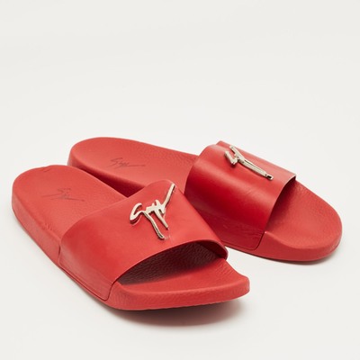 Bold and contemporary, these Giuseppe Zanotti slides feature red leather with signature logo detailing. The open toe design ensures casual elegance while making a statement. A standout choice for luxury streetwear.