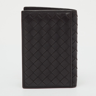 Bottega Veneta Dark Brown Intrecciato Leather Bifold Wallet 1227819 (коричневый, lpn31045574)